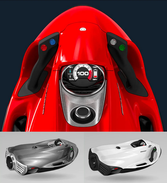 With the high-gloss surfaces, bicolor and big label design, the SEABOB has a particularly attractive appearance.
